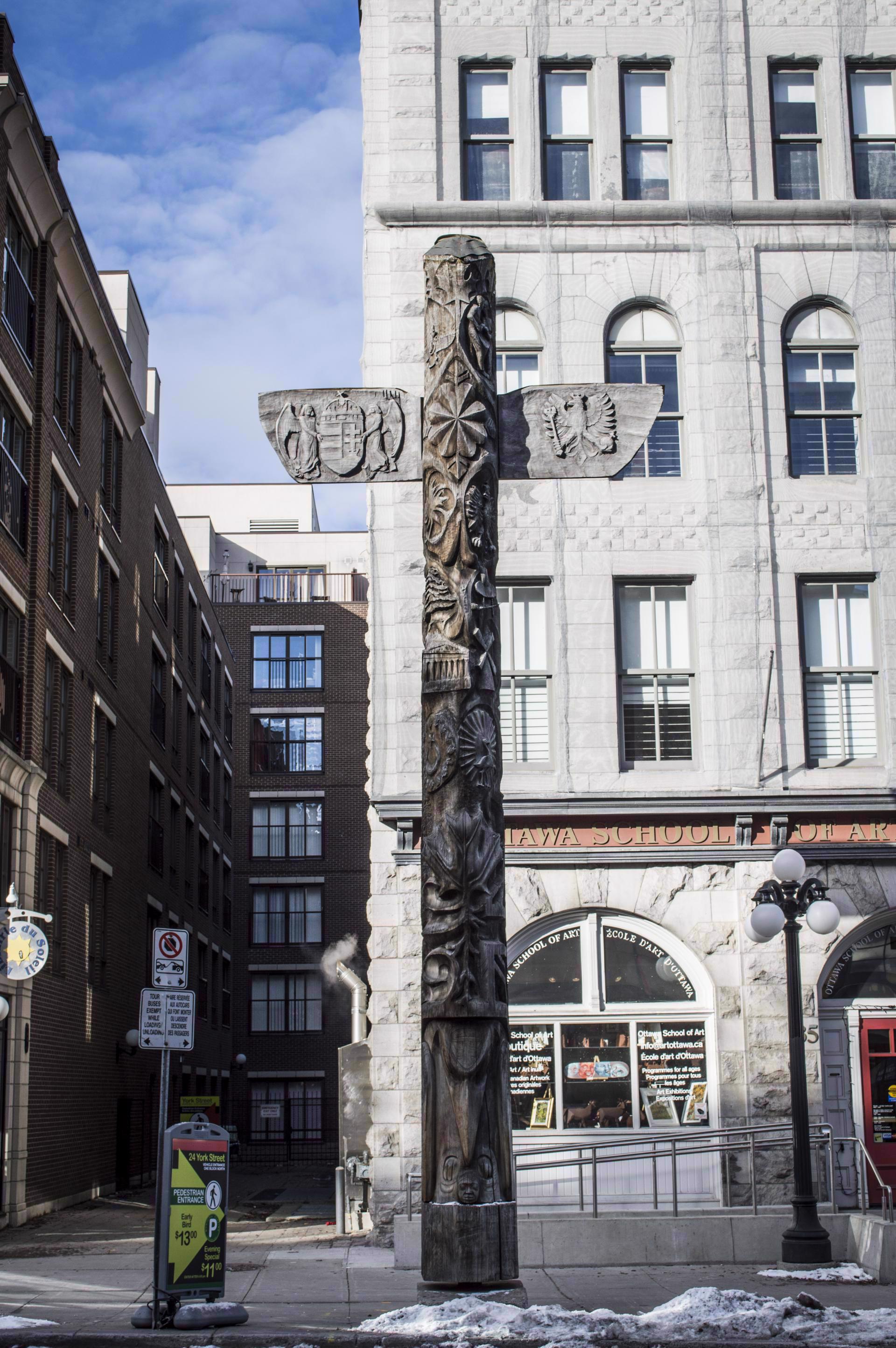 2 photos // 0 commentsThe Totem Pole of Canada was carved by the students of the Ottawa School of Art. Erected in 1991, the pole incorporates symbols of the ethnic groups that form modern Canadian society. The Hungarian crest is featured prominently on the left wing of the pole, honoring the contributions of Hungarian Canadians to society.