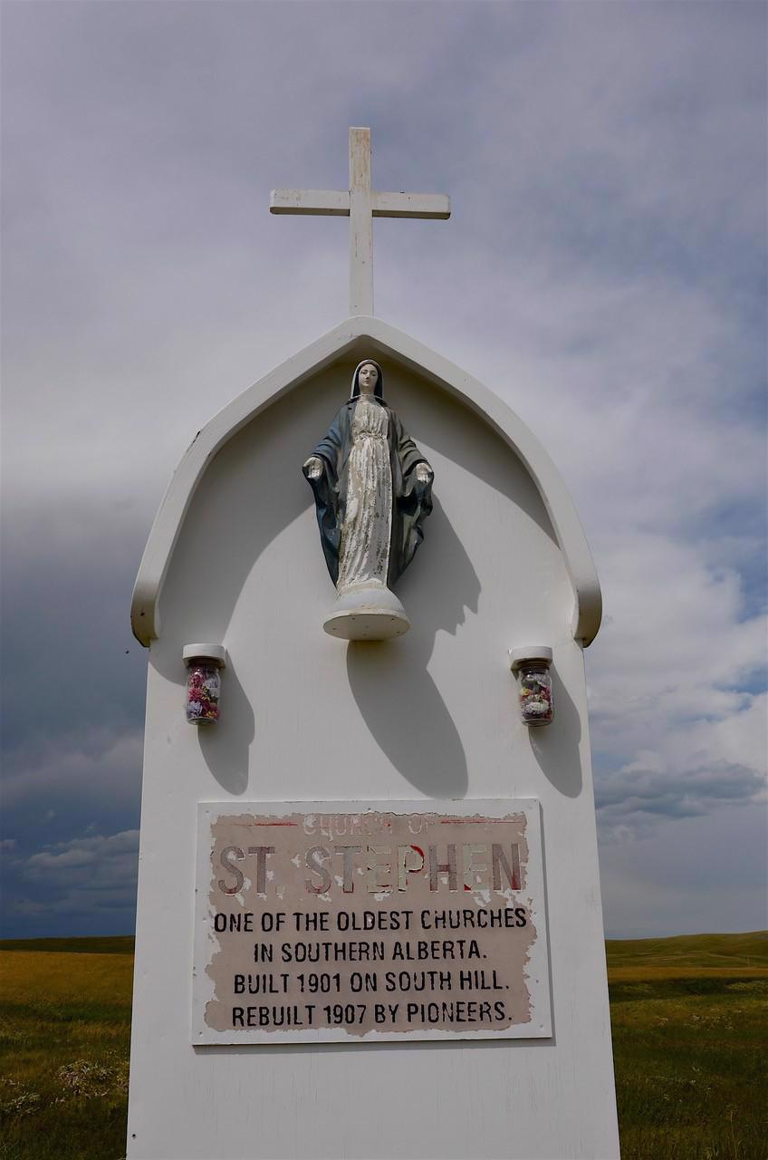 Feeling that the church was a necessary part of the community, Mike Olshaskie Sr. donated part of his property in the valley, out of the wind, for another construction. It is the same location where the church stands today. The church was named St . Stephen's of Hungary, honoring the many settlers who had come to the area from Austria and Hungary. From 1927 to 1965, the priest from Cardston would come to say Mass, perform baptism, marriages and funerals, first communion and confirmations . After 1965, the church was closed and the families traveled to Cardston for Church services.