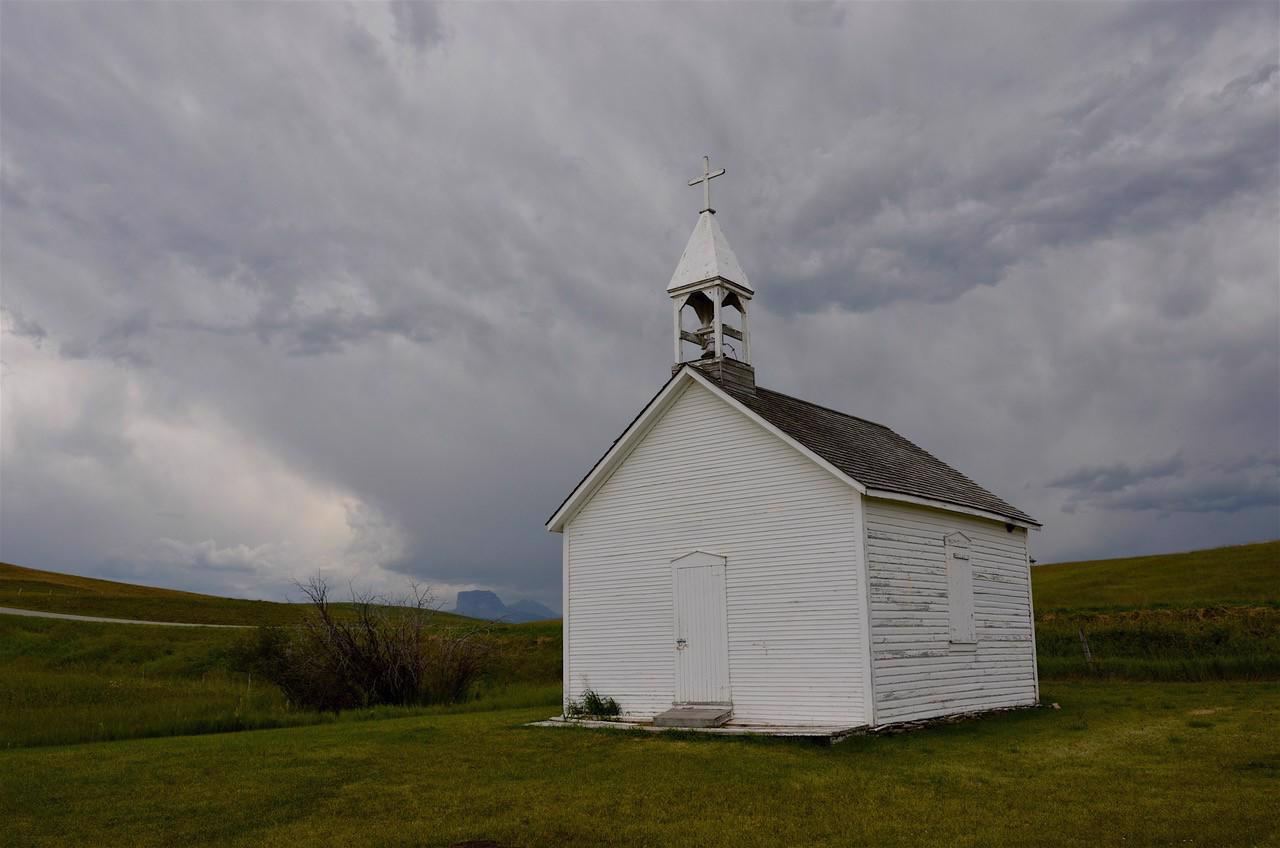 It was in 1901 that the early settlers decided that they needed a church and built it on the side of a hill overlooking the valley. Lumber for the church was hauled from Fort Macleod by horse and wagon. In August the following year, the first Mass was said in the new church. Unfortunately, the church had been damaged by several wind storms.