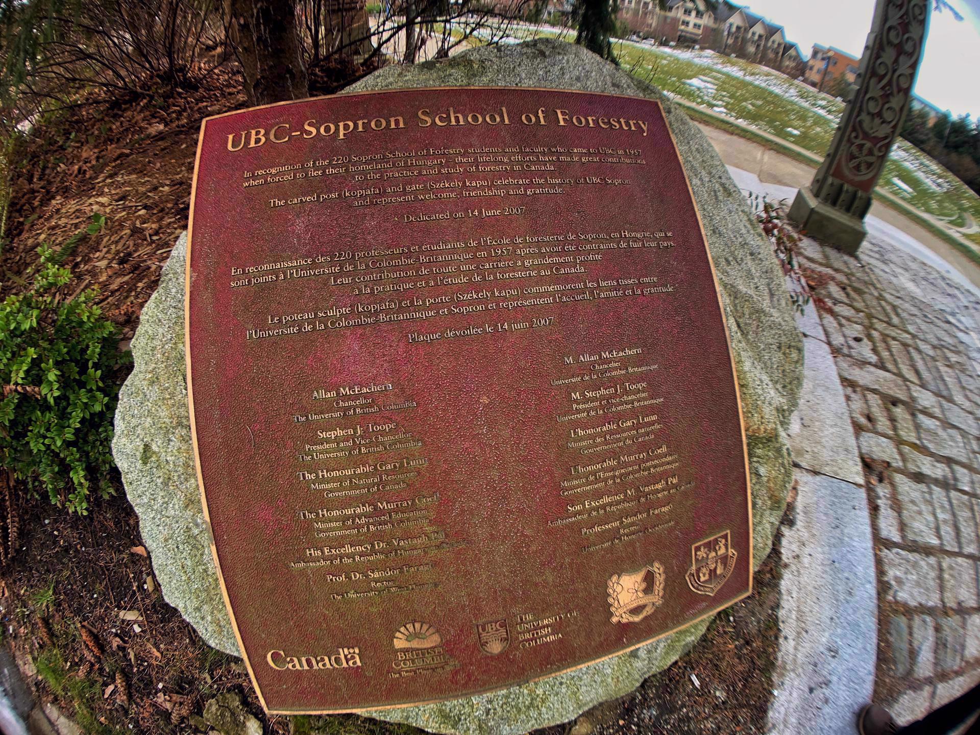4 photos // 0 commentsErected in 2007 and created by László Józsa, the gate symbolizes the gratitude of students and teachers from the Sopron Forestry College who were welcomed in Canada after the Hungarian Revolution and Freedom Fight of 1956. The University of British Columbia enabled them to finish their studies and become valuable members of Canadian society and contributed to the development of the forestry sector in British Columbia in a significative way.